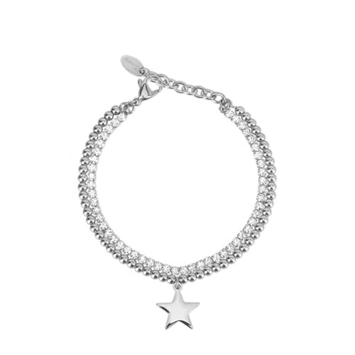 Bracciale in acciaio 316L con elementi Ø 2 mm, tennis di cristalli Ø 2 mm e pendente stella 13x13 mm, lunghezza regolabile da 16.5 a 19 cm