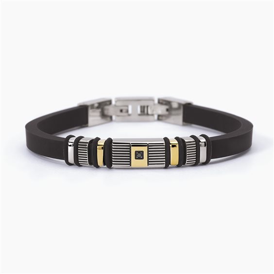 Bracciale in acciaio 316L con silicone nero, elementi con PVD Gold e cristallo Ø 1.75 mm, lunghezza regolabile da 19 a 20.50 cm