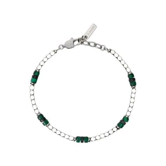 Bracciale uomo 2Jewels della collezione Original realizzato in acciaio color silver con cubetti faccettati e dischetti di pietra lavica e malachite sintetica.