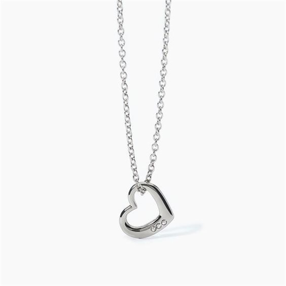 Girocollo in acciaio 316L con catena rolò larghezza 2 mm e ciondolo cuore 16x14.20 mm con cristalli bianchi Ø 1.50 mm lunghezza cm 45
