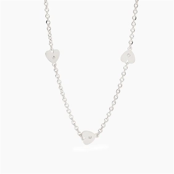 Girocollo in acciaio 316L con catena forzatina 2 mm, elementi cuore 7.5x9.5 mm e cristalli Ø 1.5 mm, lunghezza regolabile da 38 a 43 cm