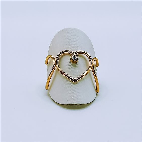 Anello a cuori artigianale nel nostro laboratorio, realizzato in filo pieno di oro giallo. Monta al centro un diamante di 0,10 Kt.