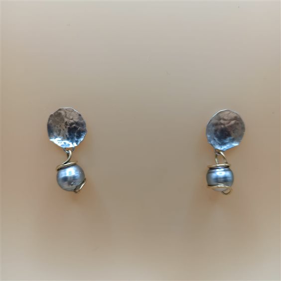 Orecchini handmade con perle grigie barocche,finitura martellata