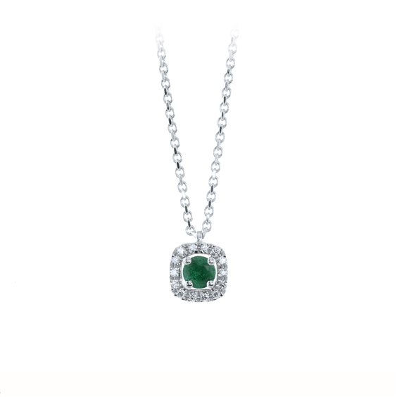 Collana con smeraldo(Zambia) e diamanti a contorno