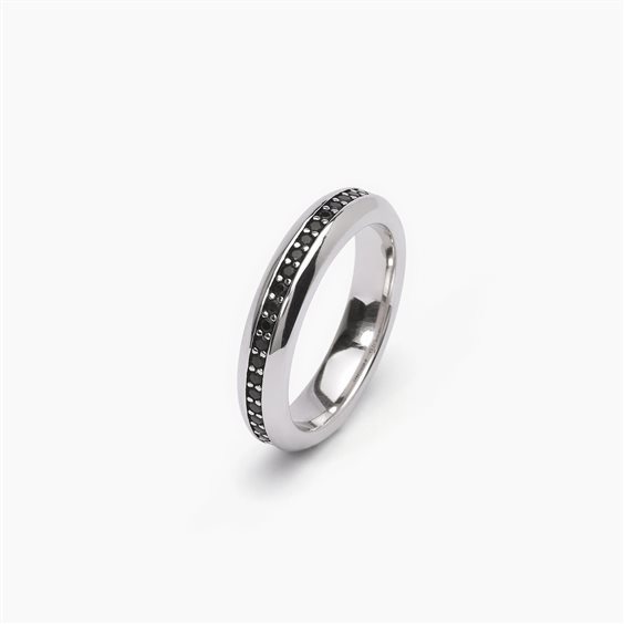 Anello in argento 925/°°° rodiato con zirconi neri Ø 1.50 mm, misura 19