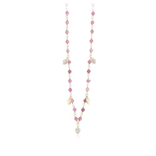 Collana donna , argento 925% dorato , zirconi bianchi a forma di cuore , tormalina rosa , lunghezza cm 45 regolabile fino a m 40. Immagine indicativa , la confezione può variare di forma e colore , scatola e garanzia originali.