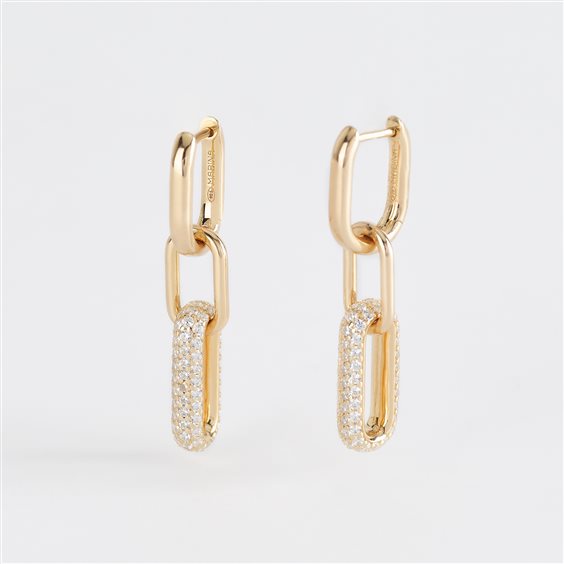 Orecchini da donna di mabina. Orecchini realizzato in argento 925 di colore dorato con zirconi. Dimensione: 8. 50x38. 80mm. Chiusura: ad incastro.