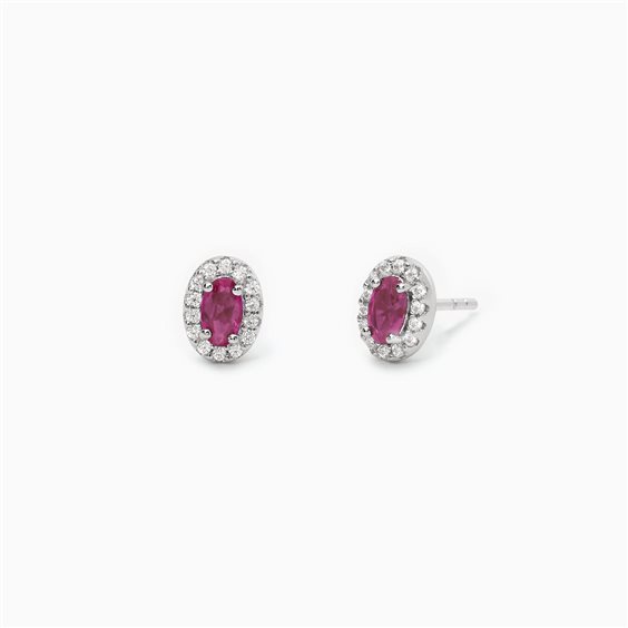Orecchini argento 925/°°° rodiato con rubini sintetici taglio ovale 5x3 mm e zirconi bianchi Ø 1.00 mm