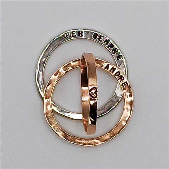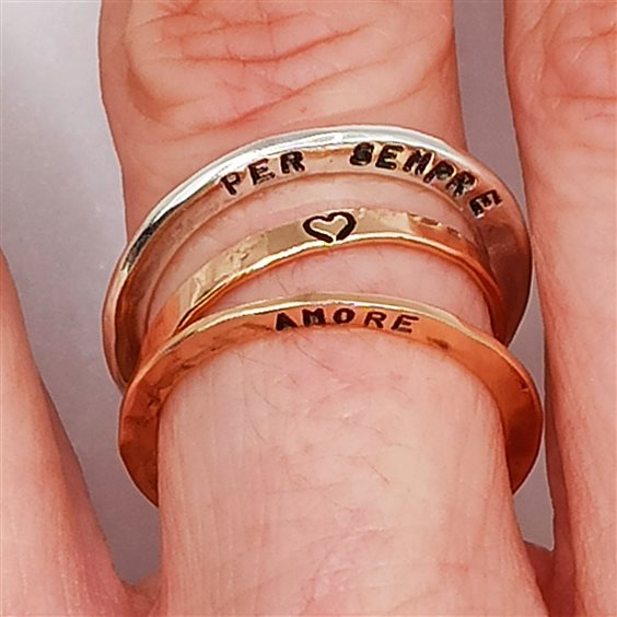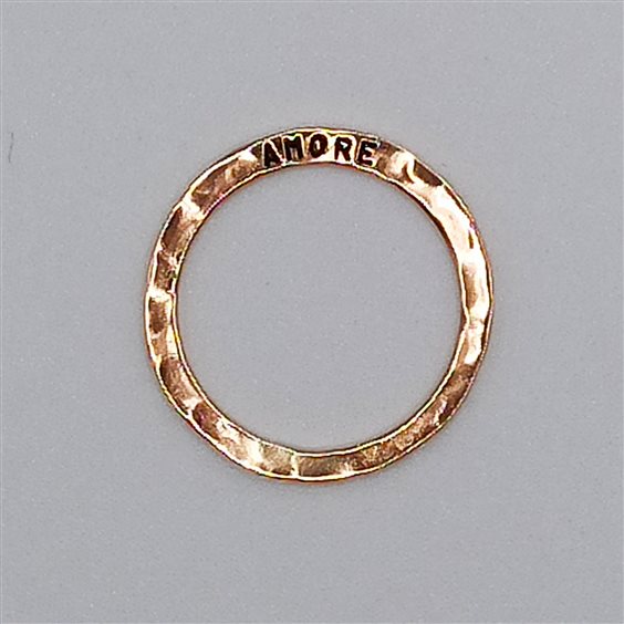 Anello dell'Anno Taglio in Oro Rosa 9kt Martellato e punzonato con la parola AMORE .A richiesta qualunque misura e frase, La personalizzazione a punzone è inclusa nel prezzo, max 25 caratteri.